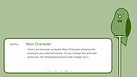 Hello! i've just released Pronoun Tool, a simple tool to select and display pronouns in a Ren'Py game. (For an example of a game using a simpler version of this tool, take a look at TOMATO CLINIC .)...